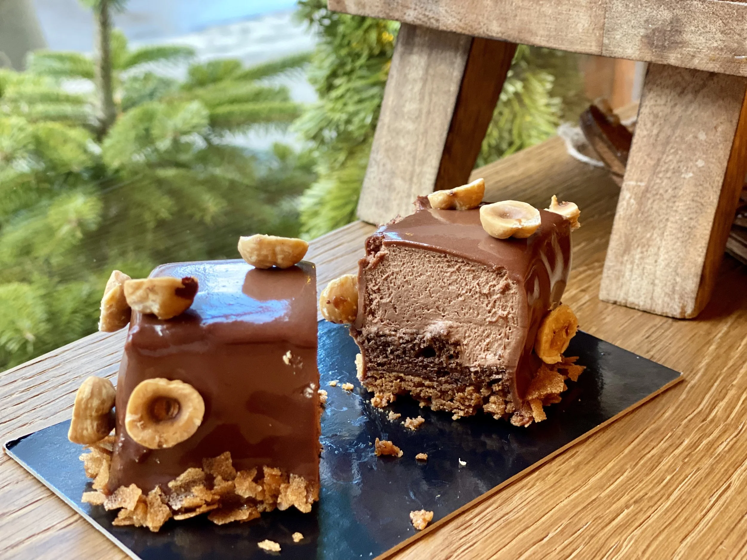 Our best-selling chocolate cake, an indulgent combination of white and dark chocolate mousse with our homemade crunchy hazelnut praline and chocolate cake. Something for everyone.