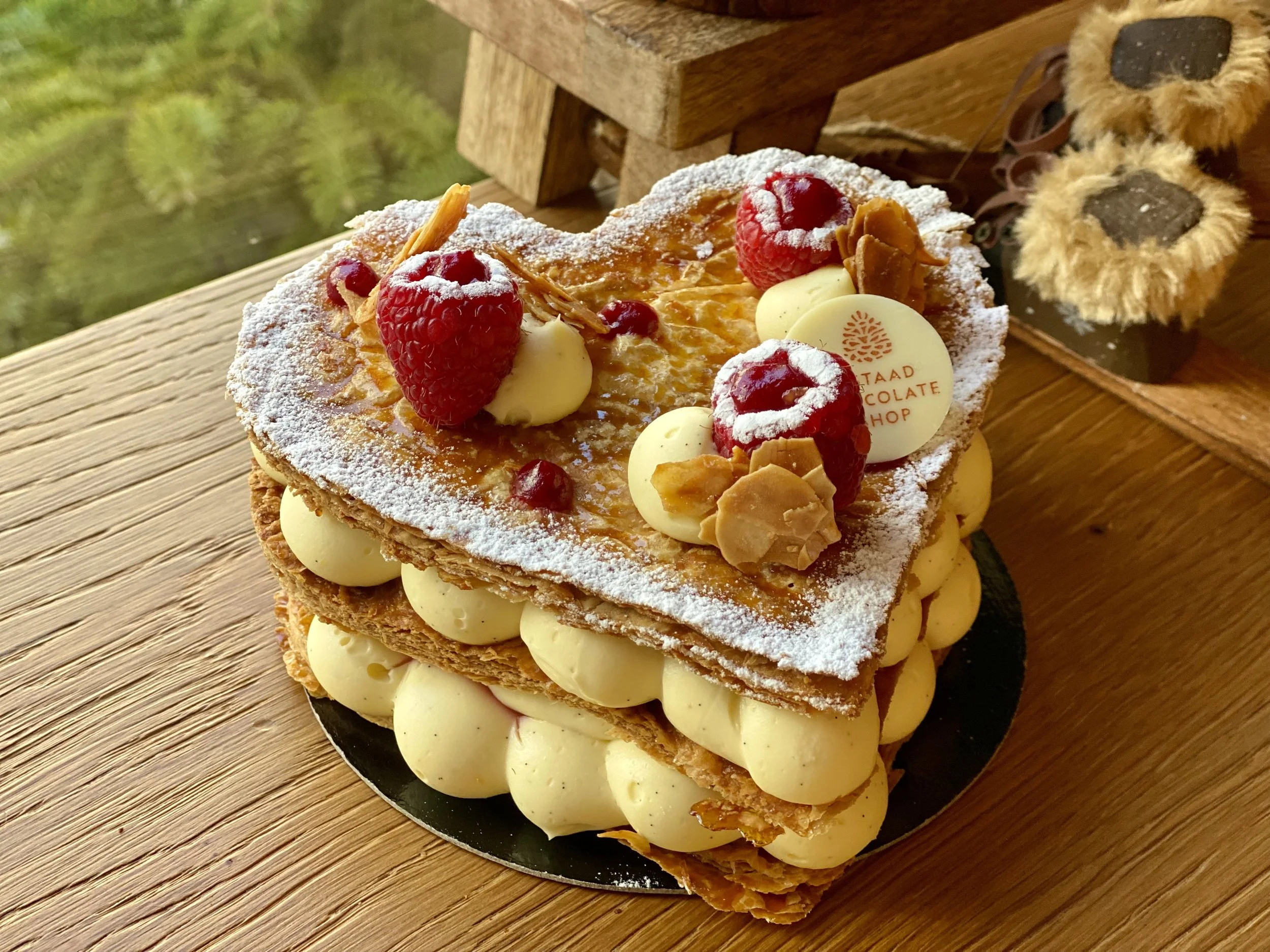Our fresh, made-to-order millefeuille is made with our handmade puff pastry with a big layer of creamy vanilla creamy, dotted with berries and topped with even more berries. Our most popular choice for large parties and celebrations.